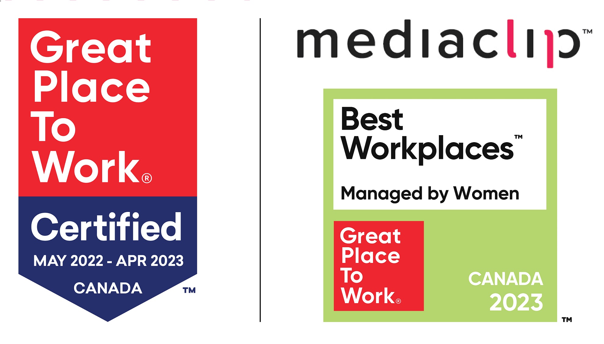 Mediaclip est certifié comme un des meilleurs lieux de travail gérés par des femmes en 2023 par Great Place to Work® au Canada.